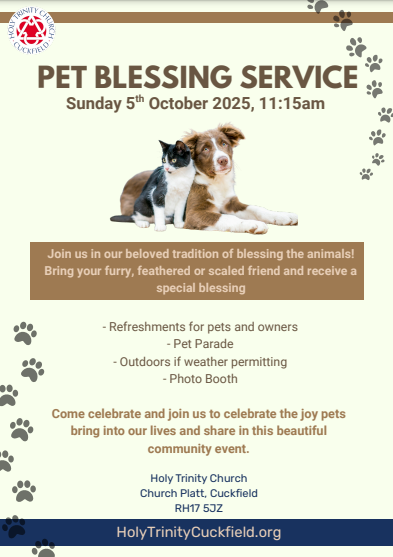 Join us in our beloved tradition of blessing the animals! Bring your furry, feathered or scaled friend along to Holy Trinity for 11.15am on Sunday 5th October, and receive a special blessing.